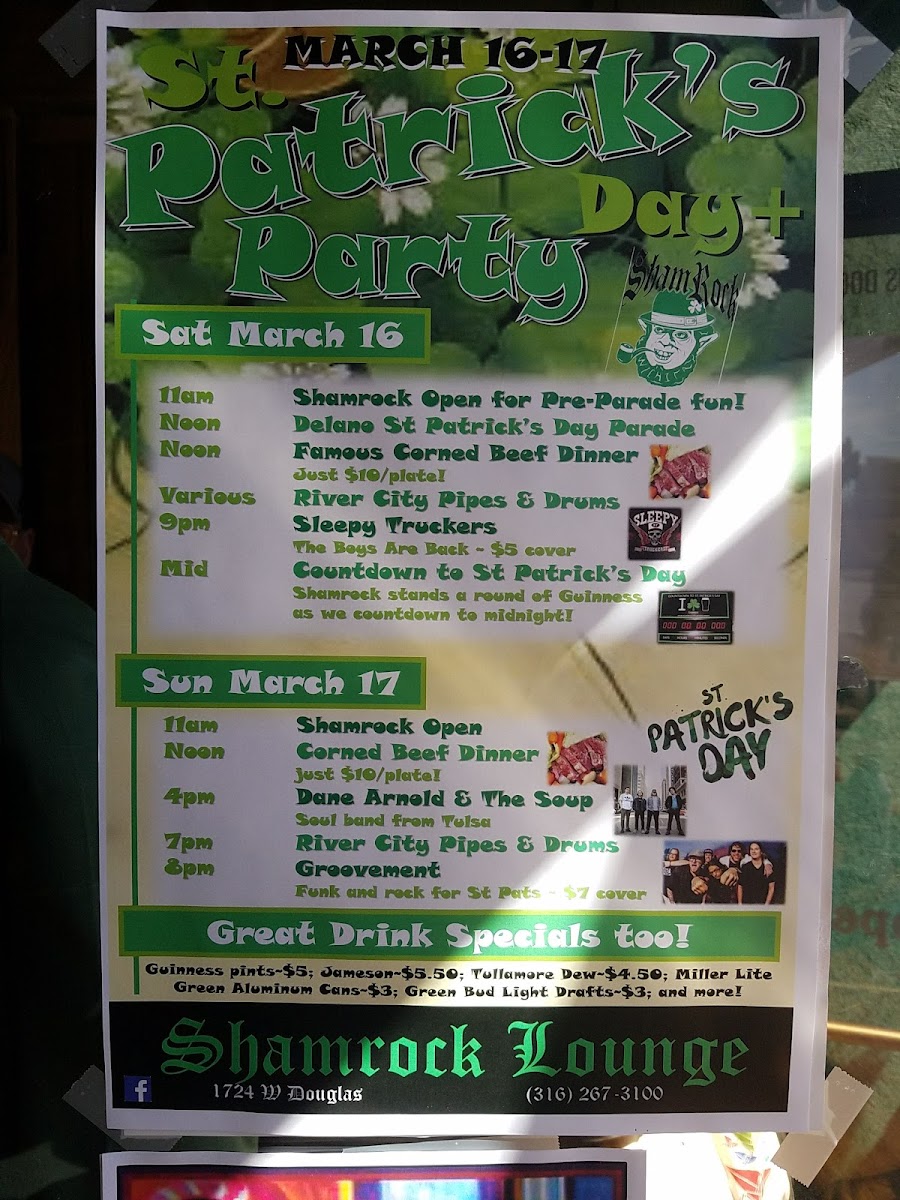 Shamrock Lounge Menu